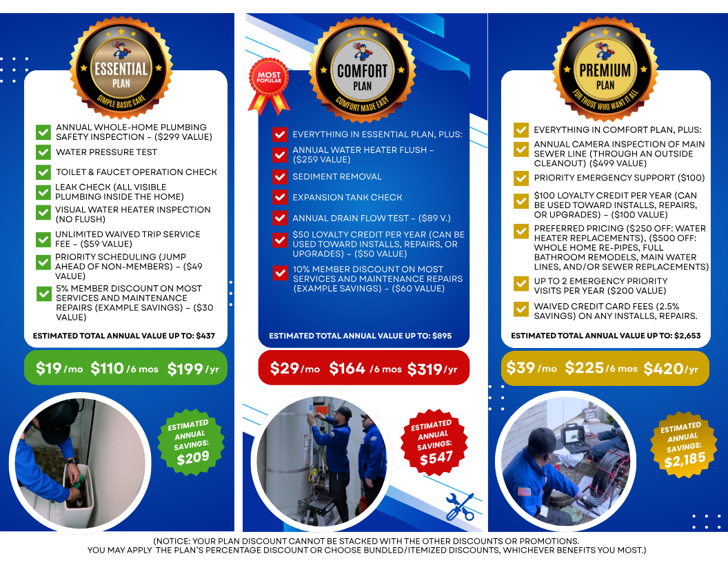 Avoid plumbing emergencies, extend the life of your water heater, and keep your drains flowing with our Home Care Plans.
